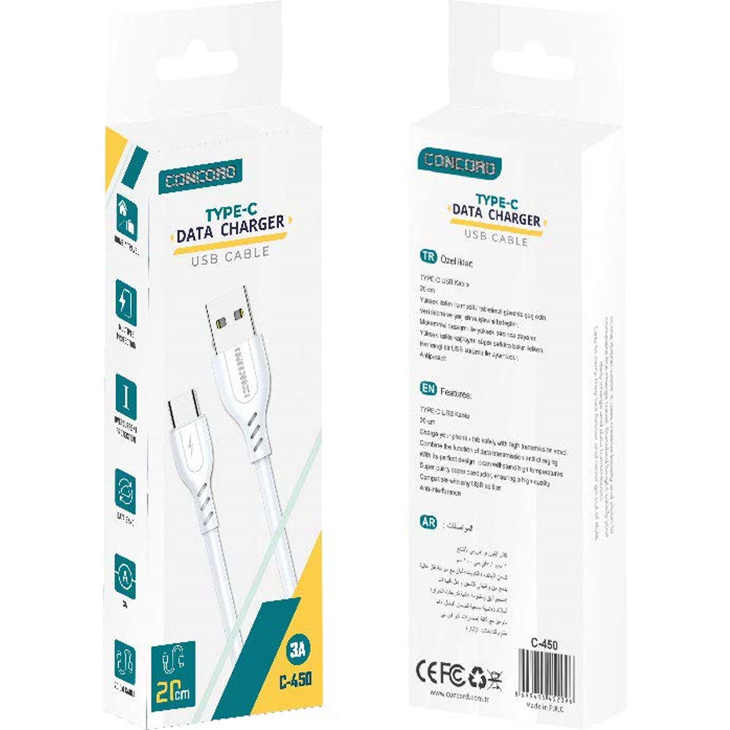 20 Cm. USB -TYPE-C Kablo 3A Şarj ve Veri Senkronizasyonu 10.000 BendTest