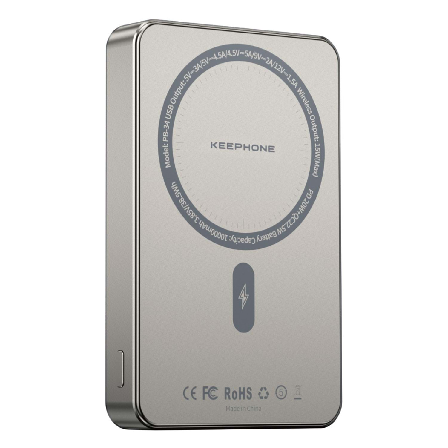 Keephone PB34 Lucci 10.000 mAh 20W Type-C 22.5W USB QC 15W Kablosuz Şarj PD Magsafe Powerbank - Koyu Gri